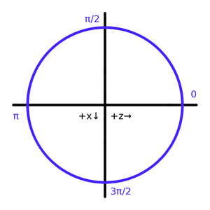 Yaw is measured in degrees, and does not follow classical trigonometry rules. The unit circle of yaw on the XZ-plane starts at (0, 1) and turns counterclockwise, with 90 at (-1, 0), 180 at (0,-1) and 270 at (1, 0). Additionally, yaw is not clamped to between 0 and 360 degrees; any number is valid, including negative numbers and numbers greater than 360.